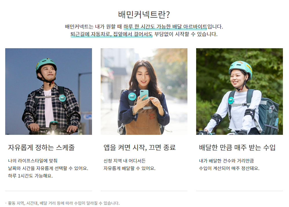 배민커넥트는 내가 원할 때 자유롭게 가능한 부업이기 때문입니다.